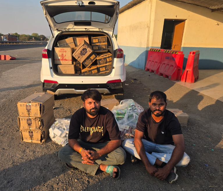 નાઓએ પોતાના કબજાની સફેદ કલરની કારમાં વગર પાસ પરમીટે ભારતીય બનાવટનો ઈગ્લિશદારૂના કુલ બોક્ષ 67 જેમાં અંદાજે ટીન નંગ 2664 જેની કુલ કિંમત 7,26,144 જ્યારે મોબાઈલ નંગ બે જેની અંદાજે કિંમત 10,000 આમ કુલ મળીને 12.36,144નો મુદ્દામાલ સાથે બે આરોપીઓની વોન્ટેડ જાહેર કરવામાં આવ્યા હતા.જ્યારે ધરપકડ કરાયેલા આરોપીઓની વધુ તપાસ માટે સોનગઢ પોલીસ સ્ટેશનને સોંપવામાં આવ્યા છે.