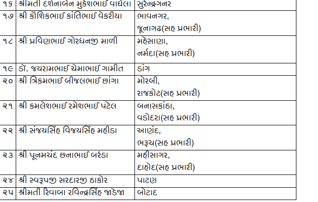 સાથે જ રાજ્ય કક્ષના રમત-ગમ્મત મંત્રી ડૉ.જયરામ ગામીતને ડાંગ જિલ્લાના પ્રભારી બનાવમાં આવ્યા છે. જ્યારે રમેશ ભુરાભાઈ કટારાને પંચમહાલ જિલ્લાના પ્રભારી બનાવ્યા છે.