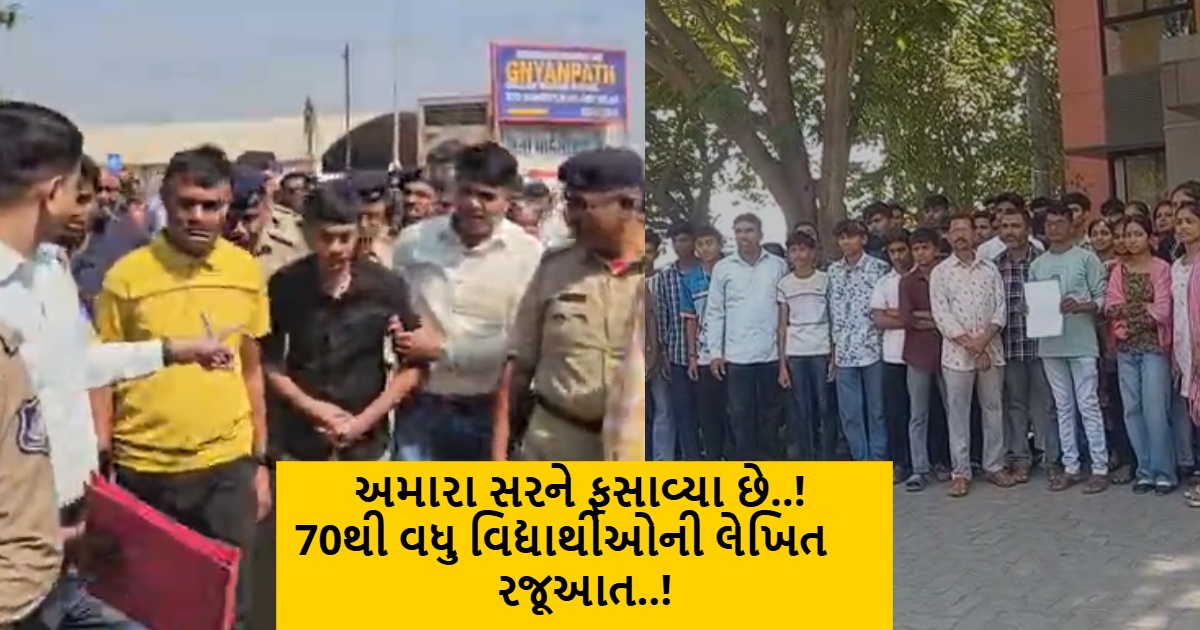 અમારા સરને ખોટી રીતે ફસાવ્યા હોવાનું કહી આવેદનપત્ર આપતા વિદ્યાર્થીઓ..
